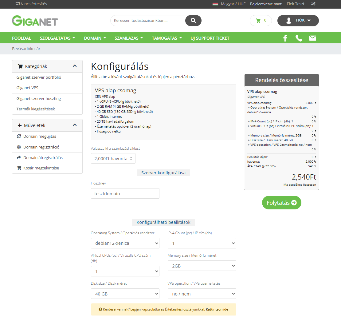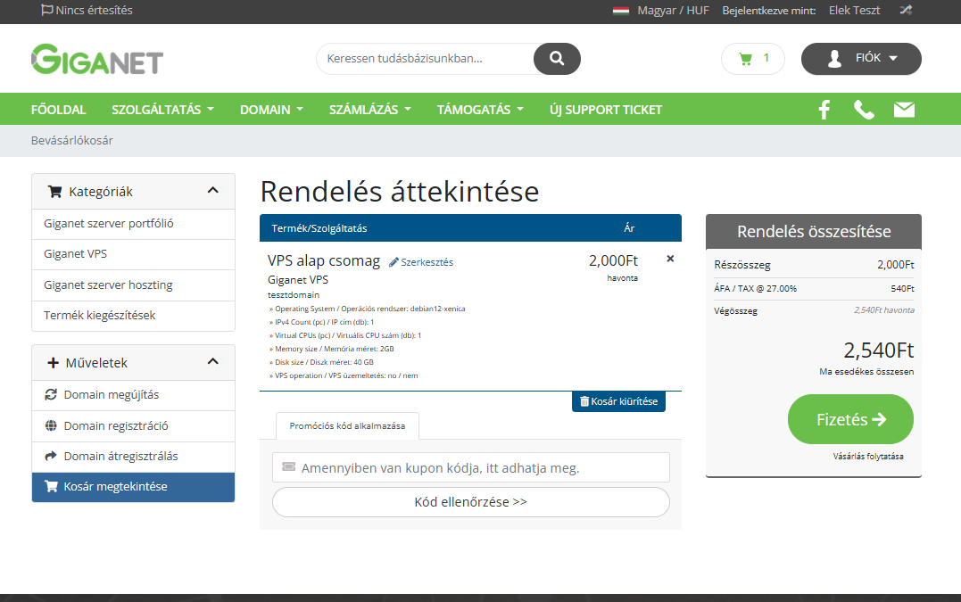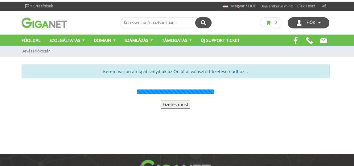 - A tranzakció sikeres teljesítése után a rendszer automatikusan feldolgozza a rendelést, és a szolgáltatás rövid időn belül használatba vehető.