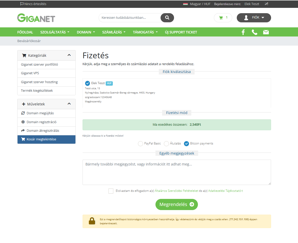 Ebben a tutorialban bemutatjuk, hogyan lehet szolgáltatást rendelni a WHMCS felületén és kifizetni Bitcoinnal.